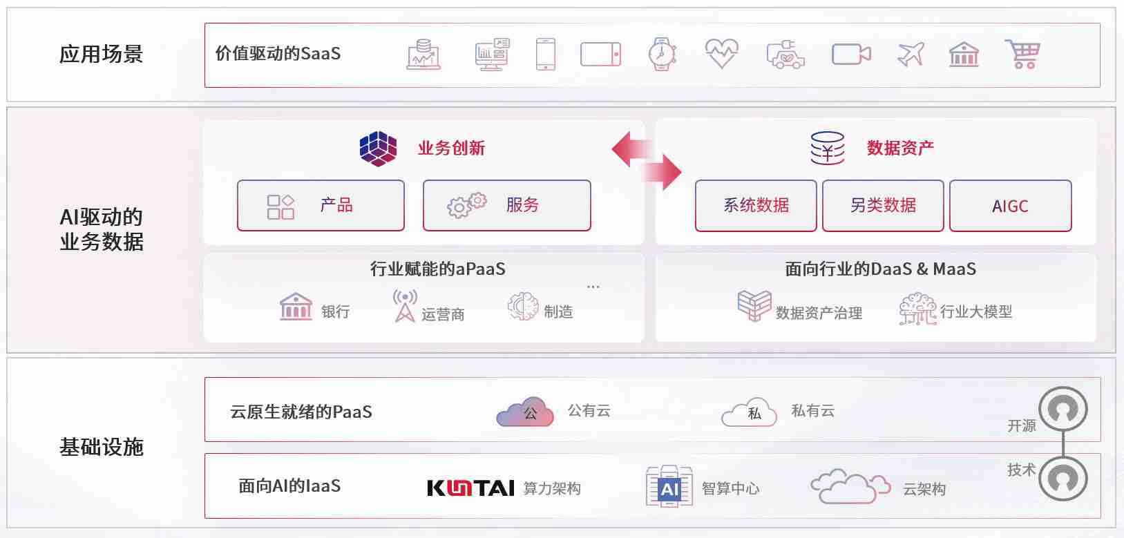 数字时代,,,,围绕企业数字化转型的关键要素,,,,KOO钱包数码开创性的提出数云融合战略和技术体系框架,,,着力在云原生、、、数字原生、、、、AI原生和信创产业上架构产品和服务能力,,,,为处在不同数字化转型阶段的快消零售、、、汽车、、、、金融、、医疗、、政企、、教育、、、运营商等行业客户提供泛在的敏捷IT能力和融合的数据驱动能力,,,构建跨界融合创新的数字业务场景和新业务模式,,,助力企业级客户建立面向未来的核心能力和竞争优势,,全面推动社会的数字化、、、、智能化转型升级。。